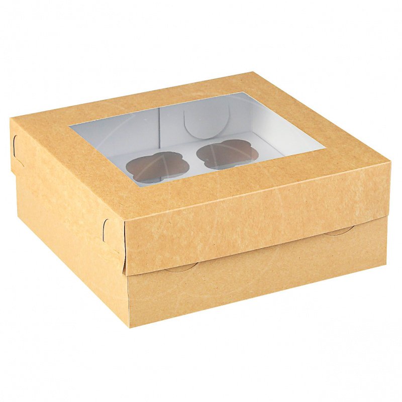 Доставка Коробка на 9 капкейков с окном крафт 25х25х10 см из магазина в вашем городе: