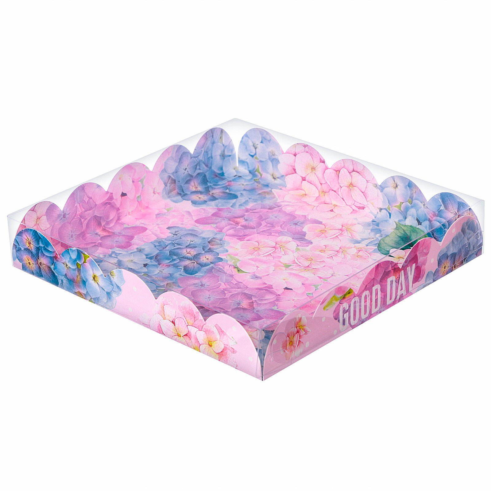 Коробка для сладостей с прозрачной крышкой "Сирень" 18х18х3 см