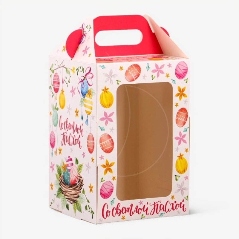 Доставка Коробка для торта/кулича с окном "Светлой Пасхи" 10х10х15 см из магазина в вашем городе: