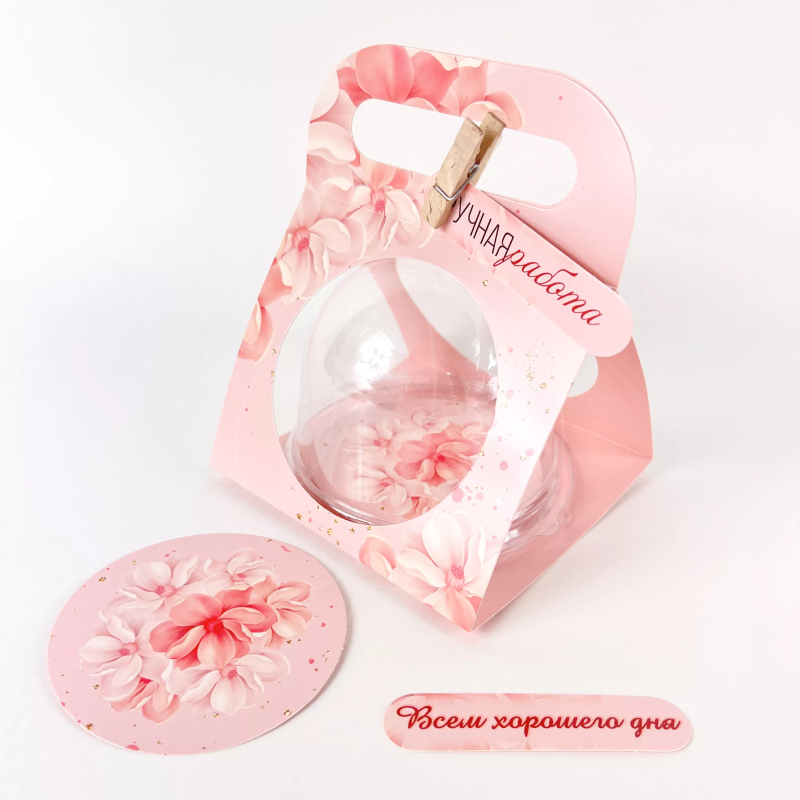 Коробка-сумочка для упаковки контейнера-купола "Цветы"