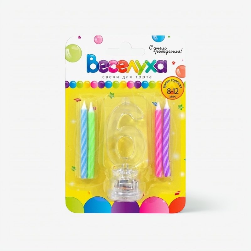 Доставка Набор тортовых классических свечей с мигающим держателем Цифра "6" из магазина в вашем городе: