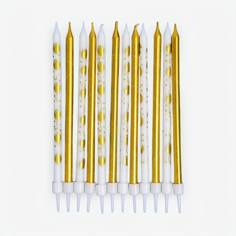 Свечи декоративные "Бело-золотые с воздушными шариками" 12 шт
