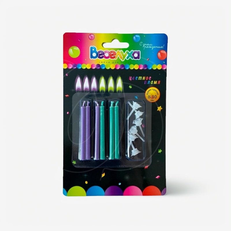 Свечи декоративные "Фиолетовый и зелёный" 6 см
