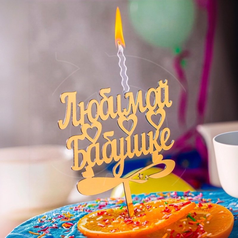 Доставка Свеча-топпер декоративная акриловая "Любимой бабушке" Золото из магазина в вашем городе:
